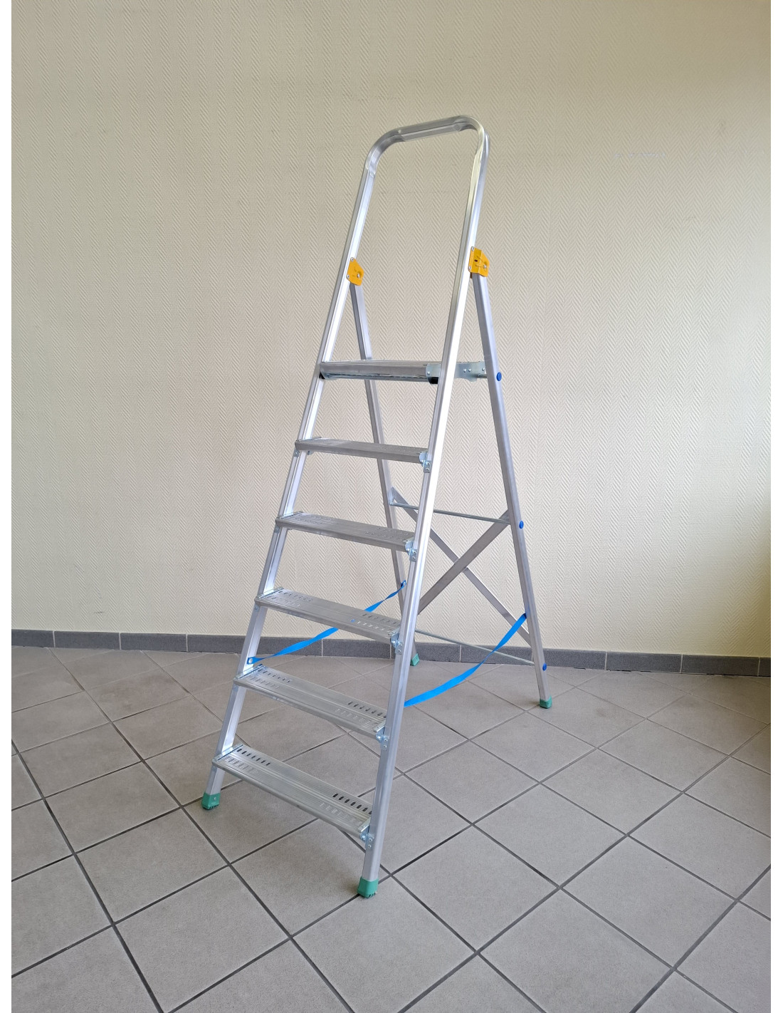 Profesjonalna drabina wolnostojąca z jednostronnym wejściem, zaprojektowana z myślą o intensywnym użytkowaniu w domu, biurze, magazynie czy sklepie. Wykonana z lekkiego, a jednocześnie wytrzymałego aluminium, gwarantuje komfortową pracę na wysokości oraz długą żywotność.
