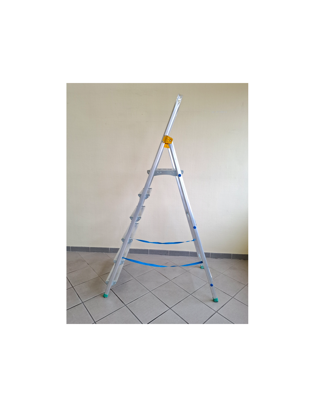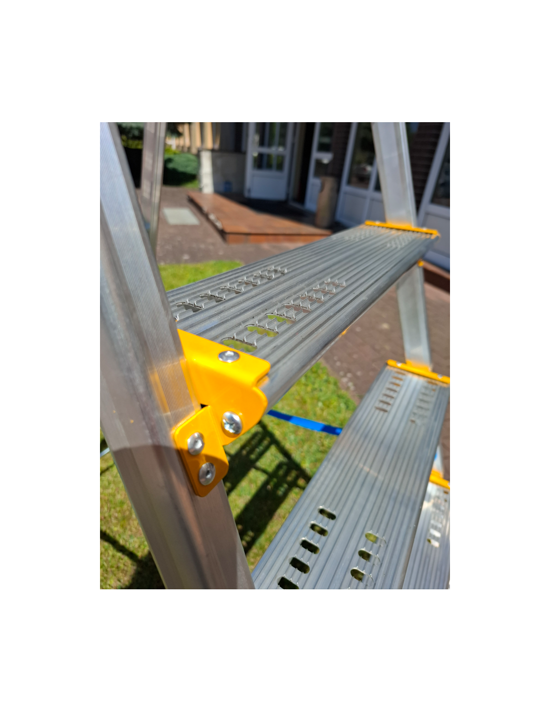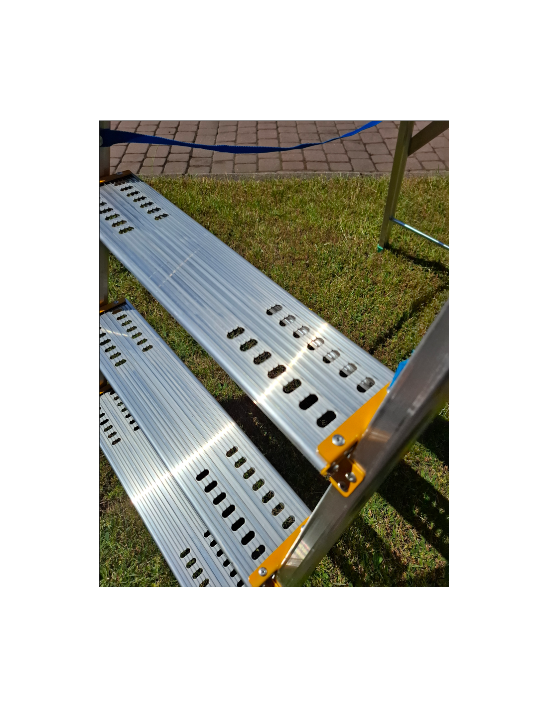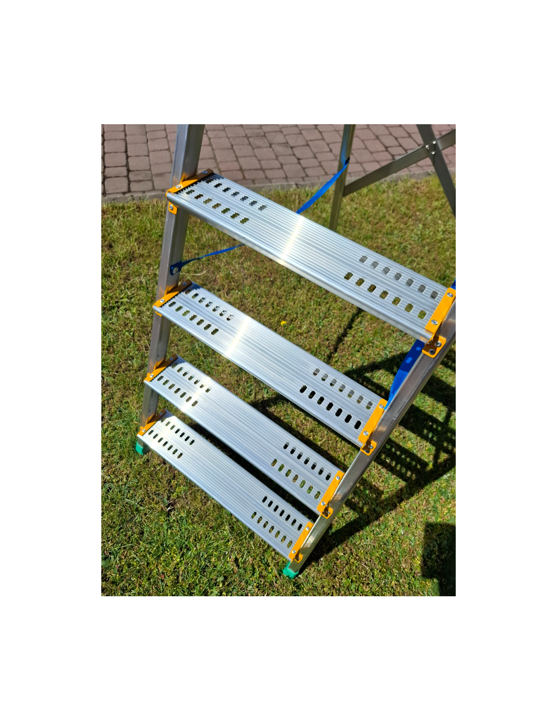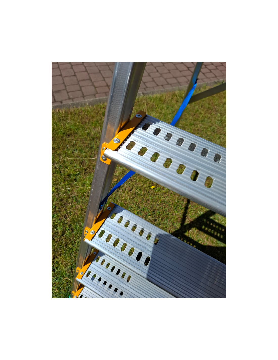 Wzmocniona konstrukcja dzięki zastosowaniu poprzeczki stabilizującej – drabina nie kołysze się i daje pewne oparcie.