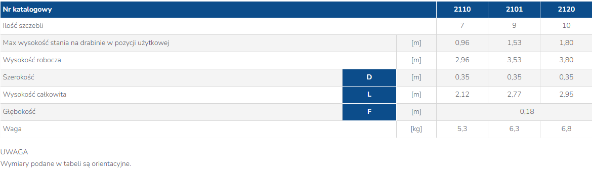 Drabina opieralna z hakiem profesjonalna Premium 2110, 2101, 2120